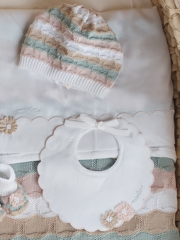 Scarpe da culla Marlù bianche con decorazioni a coda di rondine